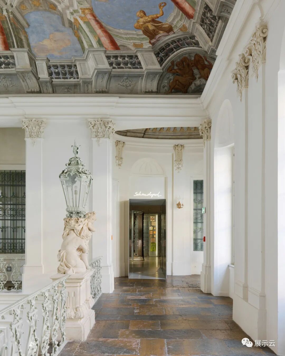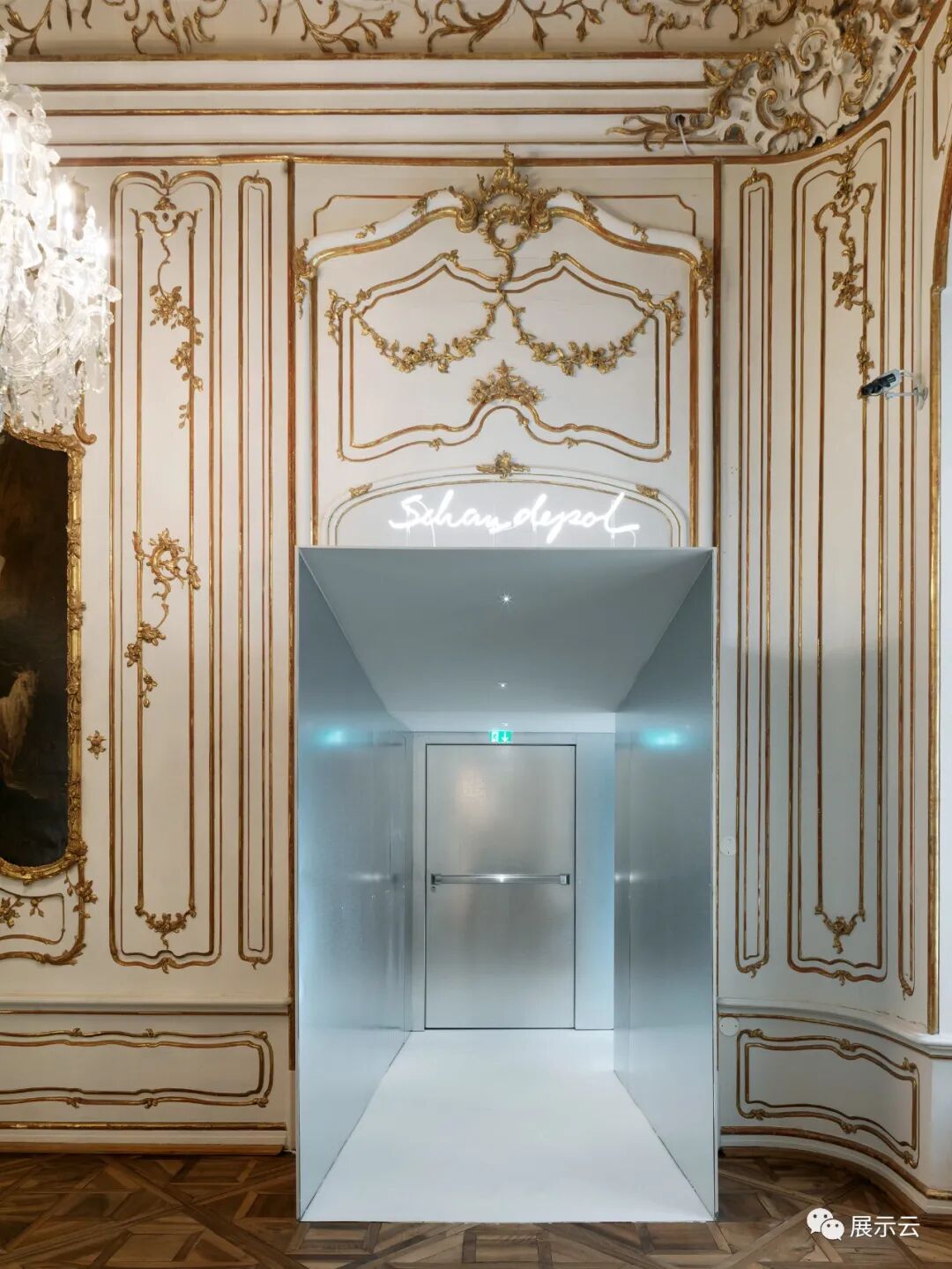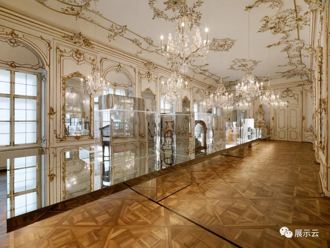 100 x Steiermark展区位于一间布满镜面的历史房间内。该空间的功能布置和艺术设计都异常清晰和考究。为迎合“历史的安放”主题,由玻璃和镜面组成的展示台散布在展区内,时刻提醒着并回应着这些历史文物的辉煌过去。空间、展品、展示装置相互融合,模糊了各展区之间的界限,带给来访者一个连续的空间体验,并引领人们思考过去和展望未来。