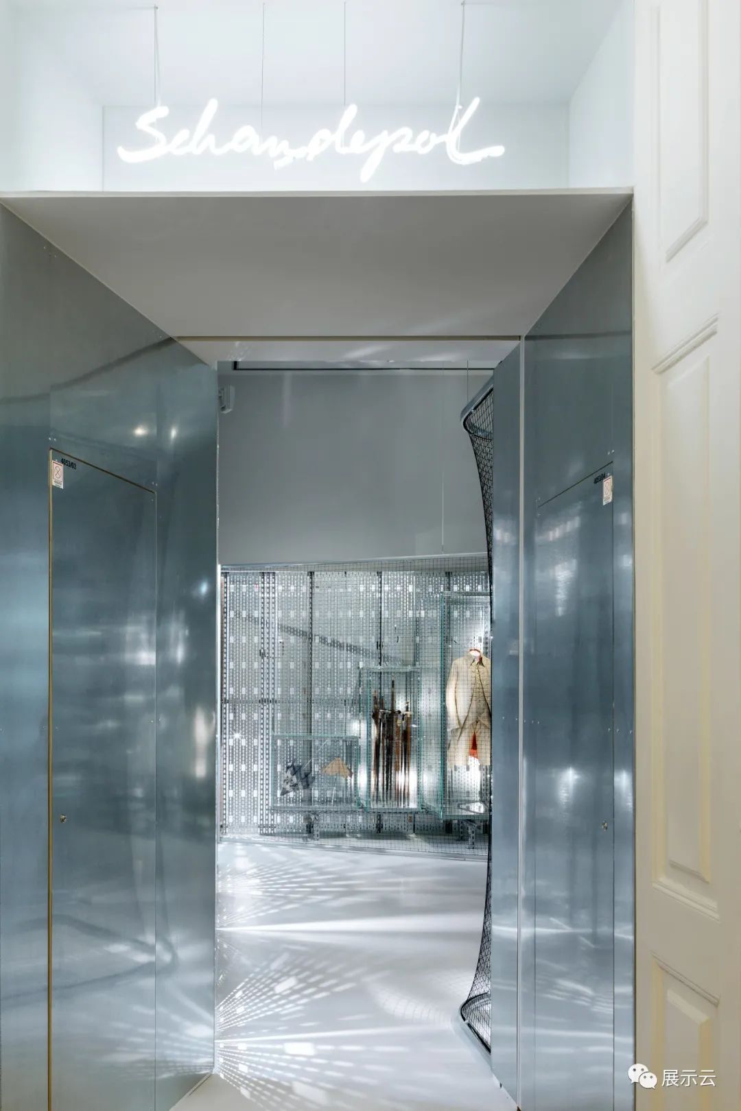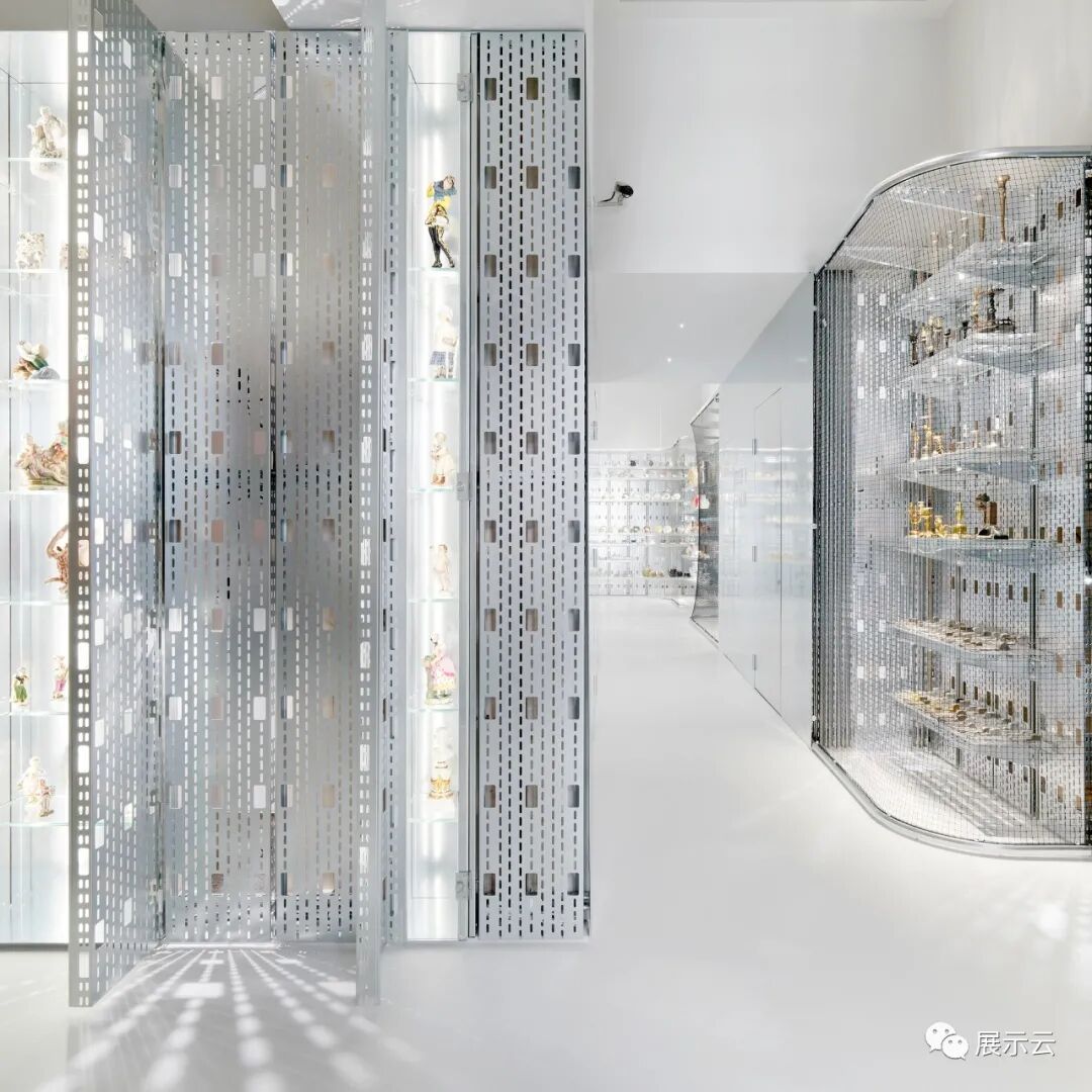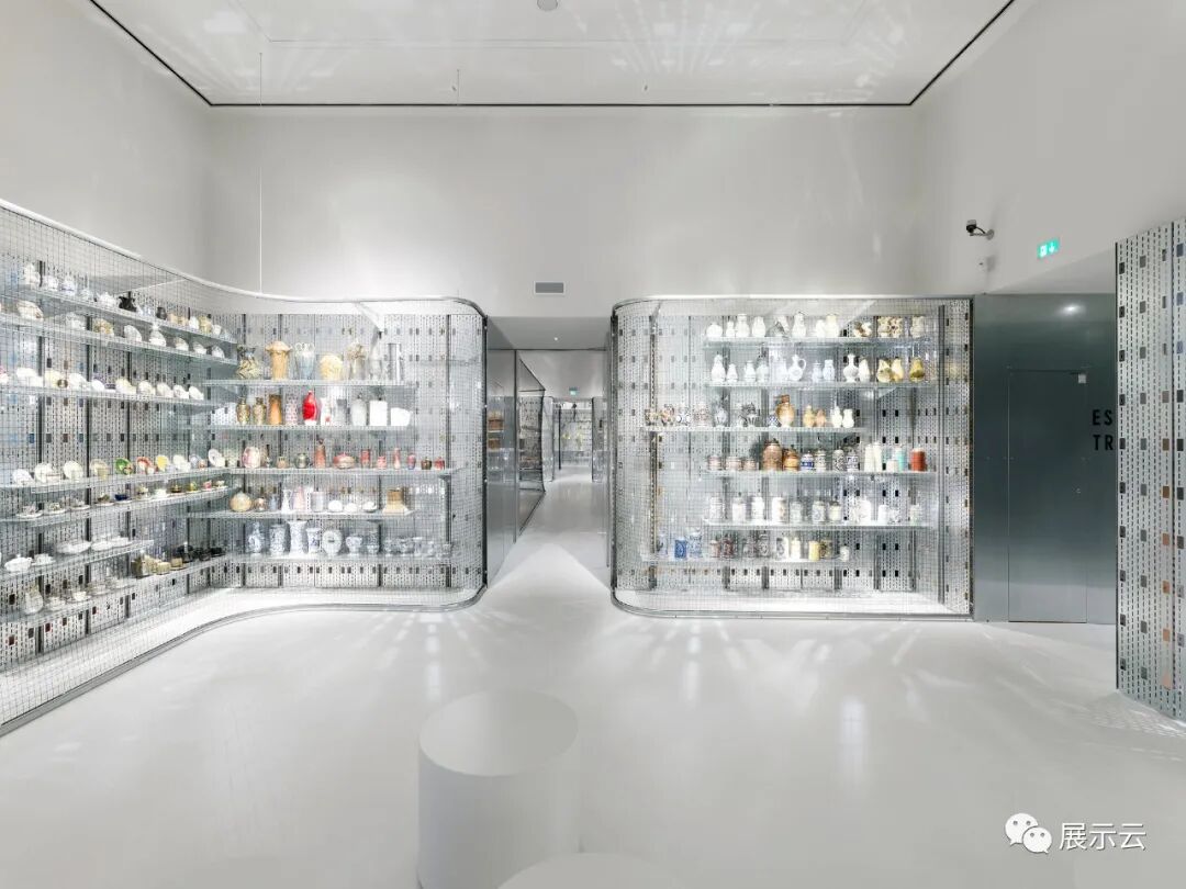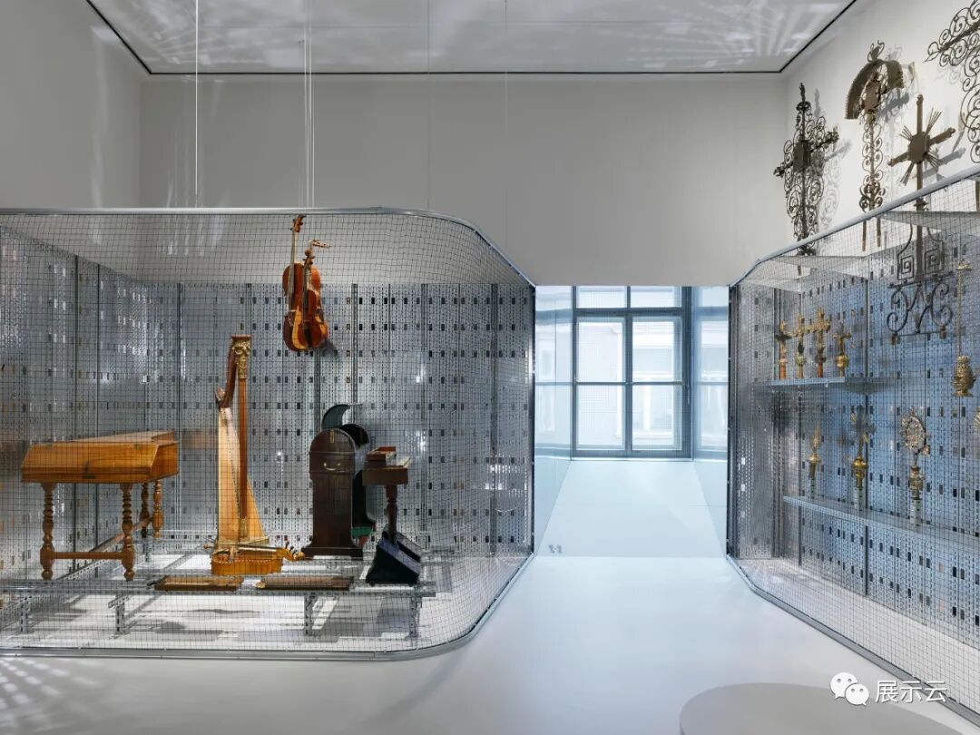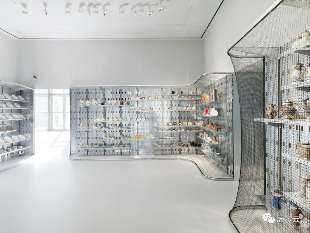 在观展流线的最后, 所有隐藏的珍宝都将呈现在来访者的面前。一个由金属网编织而成,充满工业化氛围的无限循环过渡空间,将古往今来的历史遗存与当代设计完美结合