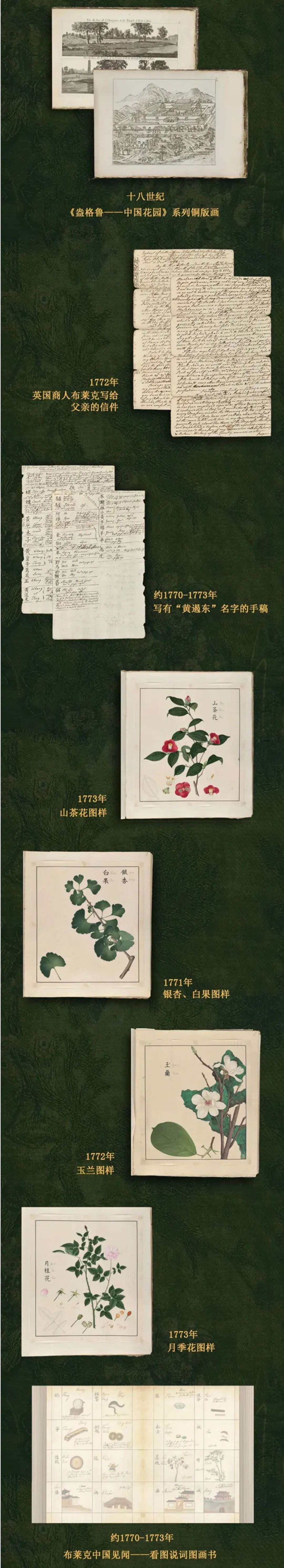 展览大规模集中呈现来自美国橡泉图书馆的镇馆之宝——18世纪英国商人约翰·布莱德比·布莱克,与其中国助手黄遏东合作的原始植物写生图册与手稿档案。这些跨越重洋而来的珍贵文献,科学记录了250年前中国南方的植物风貌,生动揭示了中西方学者在植物认知、利用及运输技术上的开创性合作与思想碰撞,是中西植物学交流史无前例的第一手实证。