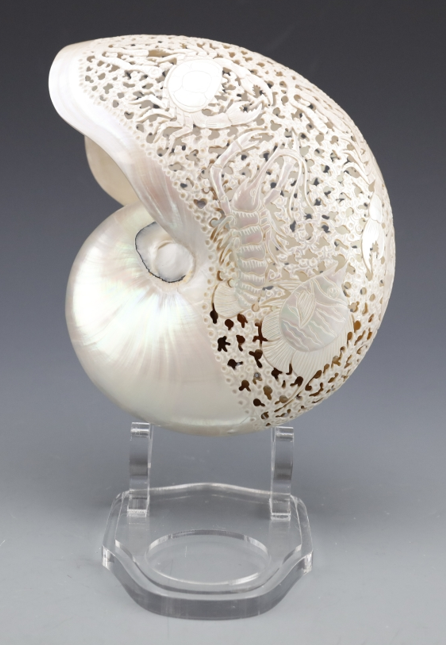 清·鹦鹉螺镂雕水族动物纹摆件 中国(海南)南海博物馆藏