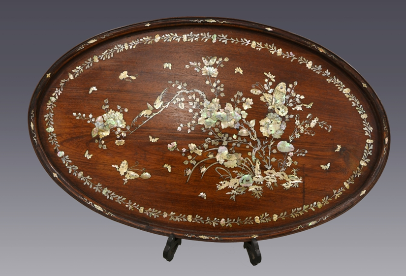 清·红木嵌螺钿花蝶纹椭圆盘 中国(海南)南海博物馆藏