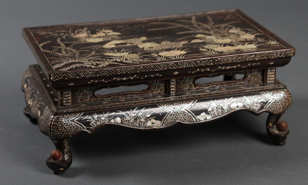 清·木胎漆地嵌螺钿“莲塘鸳鸯”纹案几 中国(海南)南海博物馆藏