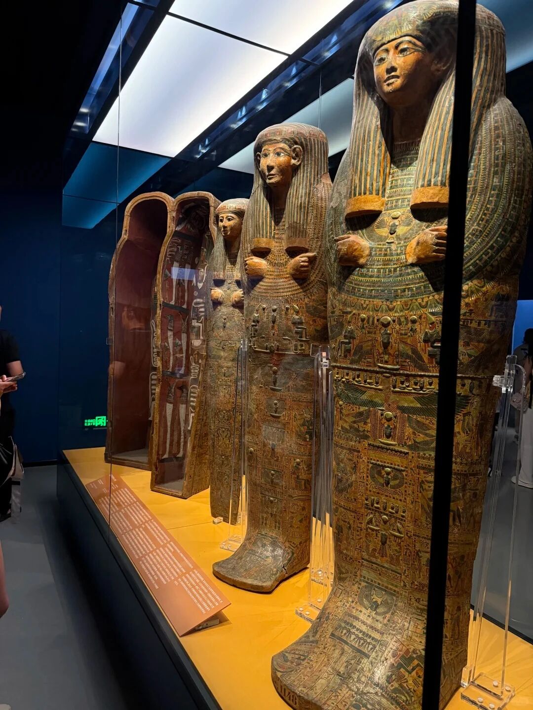 观众可以欣赏到图坦卡蒙、阿蒙涅姆赫特三世以及拉美西斯二世等法老雕像,成套木乃伊棺,女王金饰以及萨卡拉地区新发现的彩绘木棺、动物木乃伊和雕像等重磅展品,感受古埃及文明的神秘和辉煌。