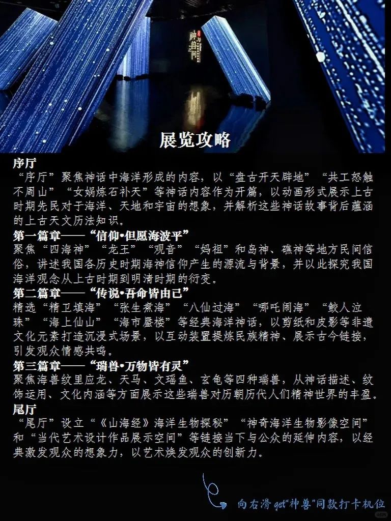 推荐理由:该展览以沉浸式体验为特色,将中国海洋神话中的神与兽形象生动地展现出来。通过多媒体展示、场景还原等手段,让观众仿佛置身于神秘的海洋神话世界中,感受中国传统文化的独特魅力和丰富内涵。展览可能会展示相关的文物、艺术品、模型等,帮助观众更好地理解海洋神话的故事和寓意。