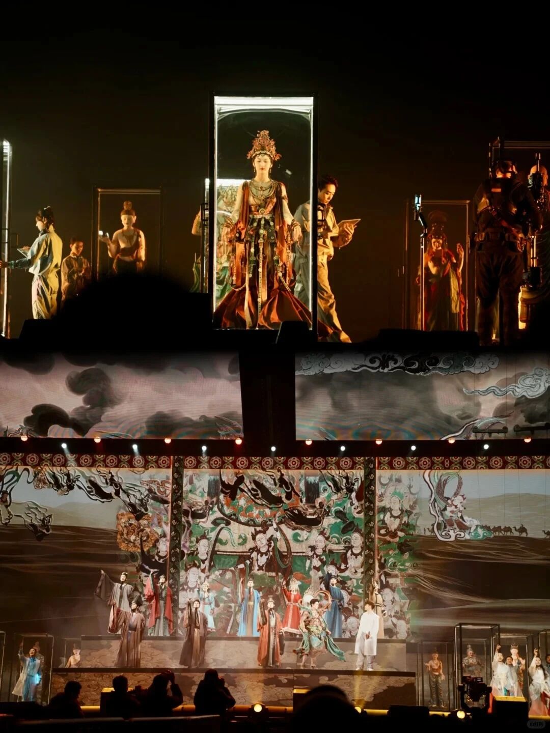 非遗与旅游、科技、教育等多领域的跨界融合,拓展了非遗的传承和发展空间。非遗研学旅游让游客在实践中学习非遗技艺,增强了对非遗文化的认知与传承意识。非遗与科技的结合,如AI设计、3D特效等在文艺作品中的应用,为文化遗产的现代表达提供了新的方式。例如,音乐话剧《受到召唤·敦煌》在舞台剧中尝试AI设计,联动3D特效、即时拍摄、二维动画等多手段的科技组合,在场馆内搭建多屏互动,呈现影视化与次元动画相结合的电影叙事视觉,达成“共赏敦煌”的艺术传播新境界。