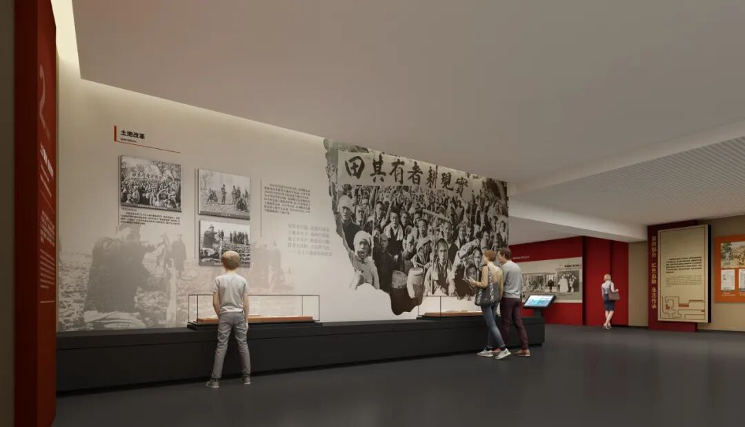 通过场景来展示中国土地法大纲的颁布,从此人民获得了土地.场景化展示能给观众带来更真实的视觉体验。