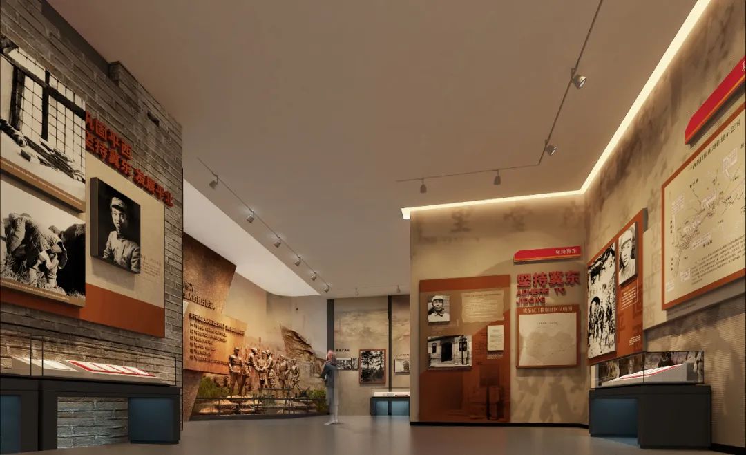 北京焦庄户地道战遗址纪念馆改陈布展项目主要展现焦庄户人民在中国共产党的坚强领导下。敢于斗争、善于斗争、扬长避短、攻坚克难、铸造出人民战争不可磨灭的光辉印记。突出“人民第一堡垒”这一主题。整体设计思路结合地道元素及巧妙利用材质及色彩关系进行整了展览氛围的渲染,努力打造一个典雅、庄重、大方的陈列空间,合理运用文物、影像、装置、色彩及声光电多媒体,互动装置等多种高科技技术手段创作出亮点,最大限度的给观众带来感官冲击、心灵的洗礼与震撼。