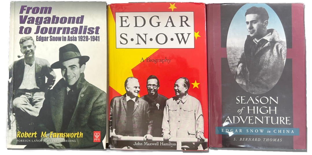 ①From Vagabond to Journalist: Edgar Snow in Asia 1928-1941,《从流浪汉到新闻记者:埃德加·斯诺在亚洲1928-1941》,作者Farnsworth在扉页题签并赠刘力群。②Edgar Snow: A Biography,《埃德加·斯诺传记》,作者Hamilton在扉页题签并赠刘力群。③Season of High Adventure:Edgar Snow in China,《冒险的岁月:埃德加·斯诺在中国》,作者Thomas在此书“致谢”中提到刘力群和安危。
