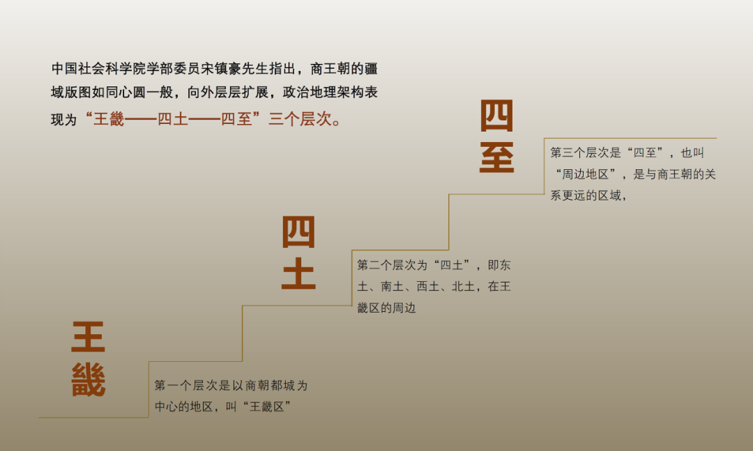 “惟王建国,辨方正位,体国经野”。宋镇豪先生以考古实证为基石,凭借扎实的甲骨文献考据,逐层揭开商王朝“体国经野”的疆域经营奥秘。商王朝政治地理架构表现为“王畿——四土——四至”三个层次。商王朝的疆域版图如同心圆一般,向外层层扩展,在三千多年前的华夏大地上圈出早期国家的治理智慧。以郑州商城、偃师商城、殷墟等商王朝为核心的王畿区,不仅是商王“祀与戎”的权力中枢,更是掌控四方铜矿、垄断青铜铸造的战略枢纽 。