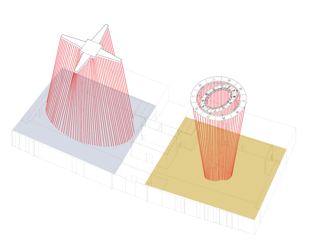 线性的表达语言强化了空间主体同时保障了空间视觉的通透 性 ;红色的视觉张力,体现 了 中华文明赓续过程中 的 生命力,赋予年代久远文明 以 现代空间表达 的想象。 具体表现为: