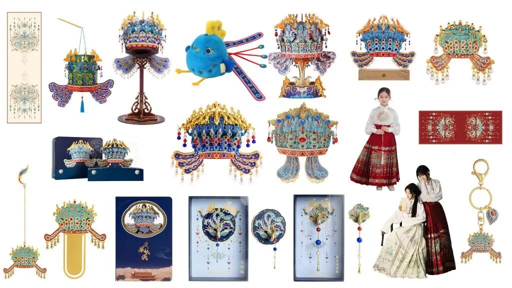 国博文创团队将这一文物元素巧妙转化为贴近大众生活的文创产品,精准满足公众对历史文化的消费需求。截至目前,围绕凤冠IP,国博文创团队已开发设计出笔记本、毛绒玩具、马面裙、雪糕、音乐盒等20余款文创产品,形成了"以爆款带长尾"的文创生态链。