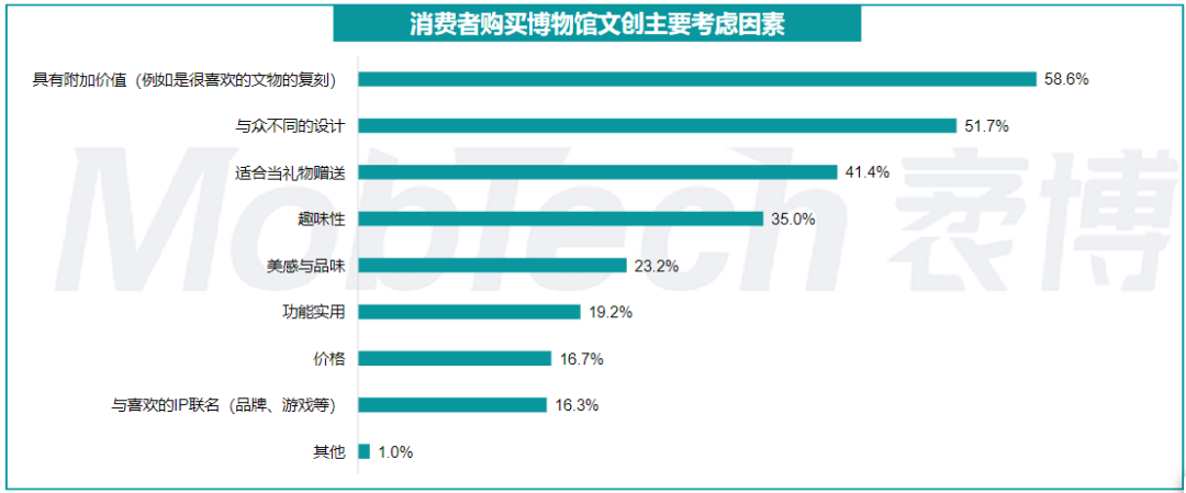 58.6%的消费者在购买博物馆文创产品时,首要考虑的因素是其是否具有附加价值