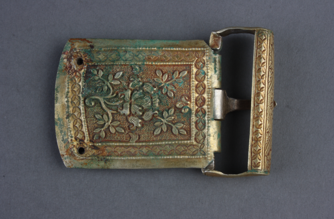 鎏金银腰带扣 长 6.7-7.4 ,宽 4.5-4.6 厘米,重 29.0-34.5 克