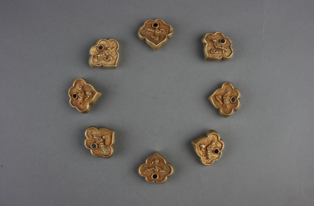 桃形鎏金银带銙 长 3.6 ,宽 3.2 厘米,重 10.2-11.8 克