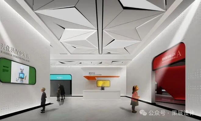 以青少年健康成长为核心主题,促进青少年全面发展为目的。根据功能划分空间,运用国际化的设计理念,贴合青少年心理,运用鲜明色彩基调,趣味化的图案组合,营造现代化未来感的视觉体验。科技馆以科学的视角,先进的展示理念,借助有趣的互动装置,蕴含现实教育意义,引导观众感知生命,尊重自然,从而学会保护自身,爱护环境。红领巾爱国主义教育综合性介绍少先队、共青团的创建历史,加深观众对社会主义荣辱观的理解。