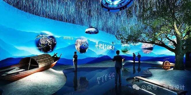 以 “绿水青山就是金山银山”为核心理念,以青色、绿色、木色作为主色调,将“诺亚方舟”的概念引申,形成“文化方舟” 的概念,打造“世外桃源”、“开放花园”、“梦想乐园”、“悦读空间”、“记忆宝藏”、“文化艺苑”六大组团,共同构成“文化方舟”,承载古今,包罗万象,气象万千;展示开化文化独特性,将开化元素与设计充分结合,形成独特的空间表现,量身定制展项装置,形成开化独特的文化品牌;让“好地方”焕发新的活力,飞龙在天,腾云而起,扶摇直上。