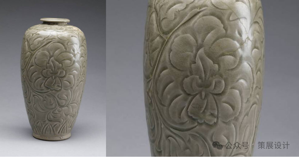 作为耀州瓷的代表作品之一,这件梅瓶线条流畅、色泽淡雅,刻花工艺细腻,具有微妙的层次感和立体感,充分展示了耀州瓷“薄如纸、明如镜、青如天、声如磬”的特点。
