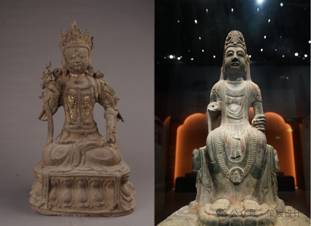 铜川博物馆还收藏了众多精美的佛造像,如明代的鎏金铜菩萨造像、隋代的张善愿造观音像等,这些造像雕刻精细,姿态秀美端庄,表情肃穆,装饰富丽,体现了古代工匠的高超技艺。