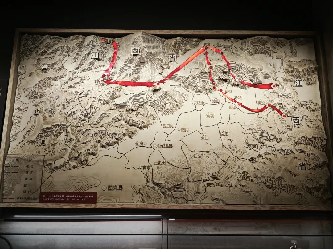 主陈列《雄关漫道——广东南雄革命历史陈列》面积超7600平方米,以中国共产党领导南雄人民的革命历史为主线,分为星火南雄、苏区南雄、浴血油山、抗日救亡、解放南雄、砥砺奋进六个篇章,利用数字媒体、文物展览、色彩衬托等,形成极具感染力的场景氛围。