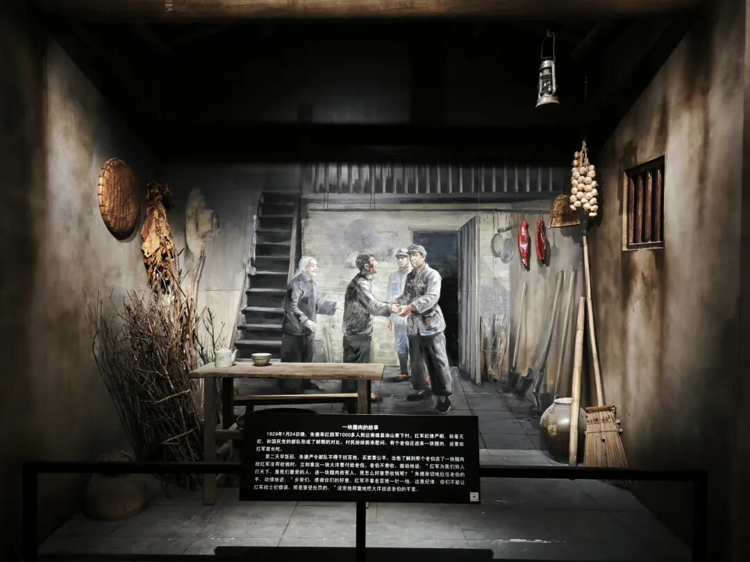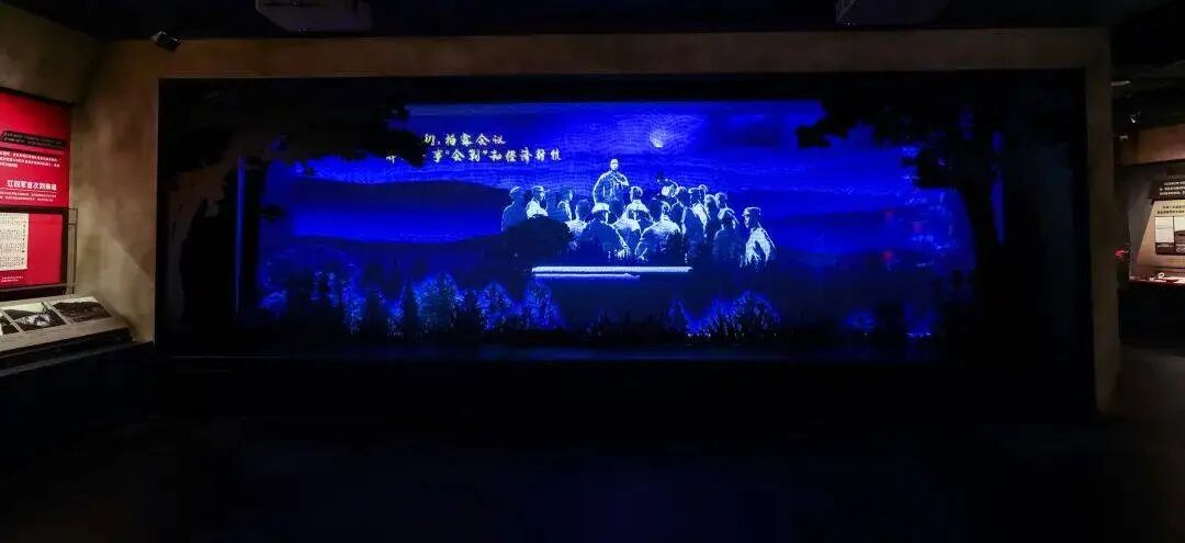 黄木岭脱险,曾被毛主席称为“一个地方党支部,一个人,一封信,救了我们党,救了整个红军。”展览以“险”为主旨设计全息沙幕数字化场景,再现南雄地方党组织帮助“朱毛红军”脱险经过。