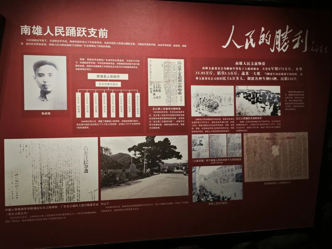 1949年9月,人民解放军第二野战军一部进入南雄境内,在梅关与北江第二支队等部队会师。北江第二支队配合解放军解放南雄县城。为支援解放军作战,南雄党组织成立了支前委员会,动员和组织人民群众踊跃支前,组织民兵积极参战。南雄人民为解放南雄乃至解放广东全境作出了积极的贡献。