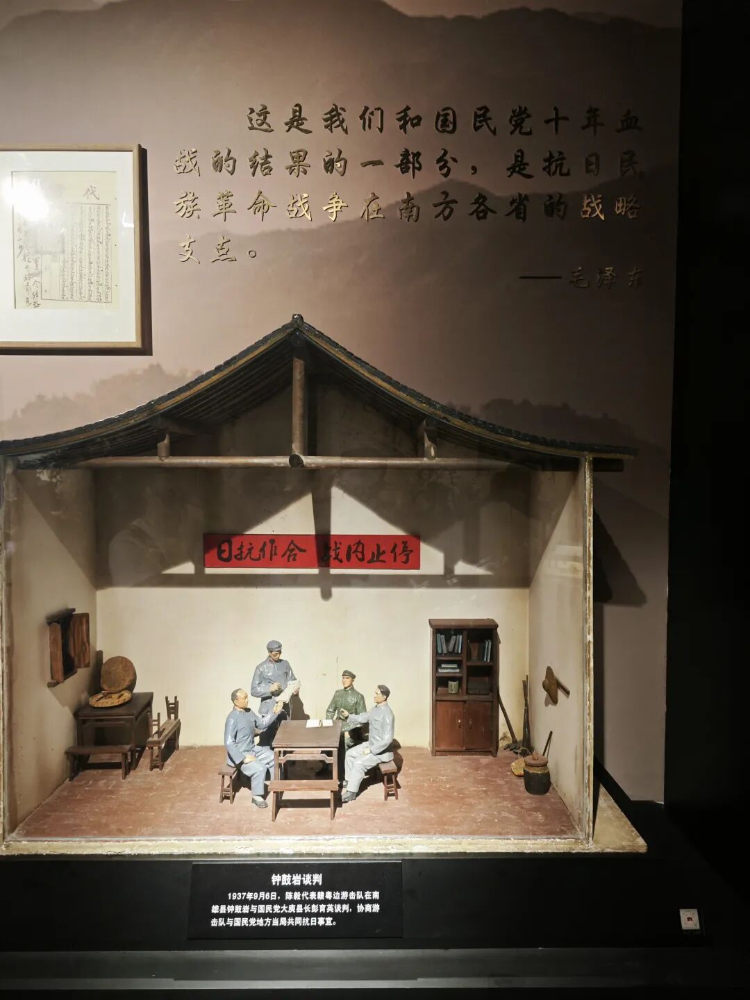 1937年9月6日,陈毅代表赣粤边游击队在南雄钟鼓岩与国民党大庚县长彭育英谈判,协商游击队与国民党地方当局共同抗日事宜。