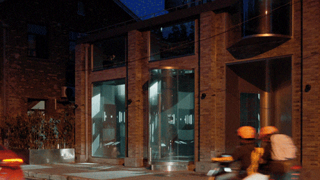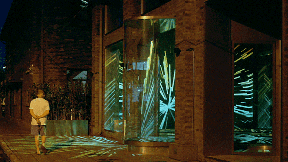 A number of protruding curved glass interfaces are embedded in the window openings as an extension of the interior space of the building. These curved glass surfaces are covered with high-tech holographic films that can not only ensure the transparency of the glass but also receive clear projection images. During the day, they can be completely blanked. At night, they spill the indoor "flowing feast" to the street and also bring the real world elements such as outdoor streets, street lights, and pedestrians into the view of indoor audiences.
