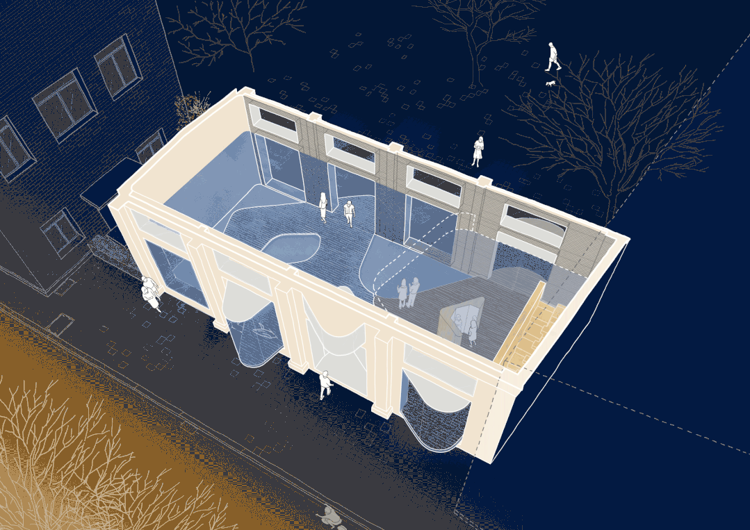 The site is located in Yangpu District, Shanghai, surrounded by industrial plants and high-density shanty towns that will be demolished. The original building is a boiler room covering an area of 150 square meters, with large windows on the east and west sides facing the street and the inner courtyard respectively.