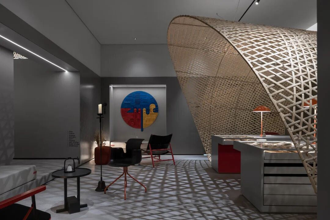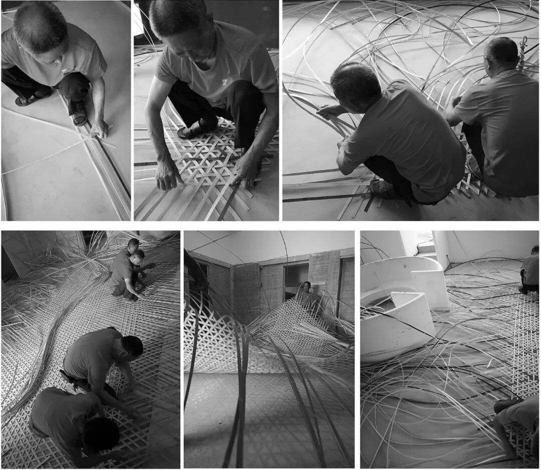 值得一提的是,本次竹编历时35天,设计小组成员深入安徽六安竹海全程参与并记录了竹的选取、加工和编织过程。竹编的利用旨在传承工匠精神,将传统的竹编工艺和“竹”这一自然材质进行传承。