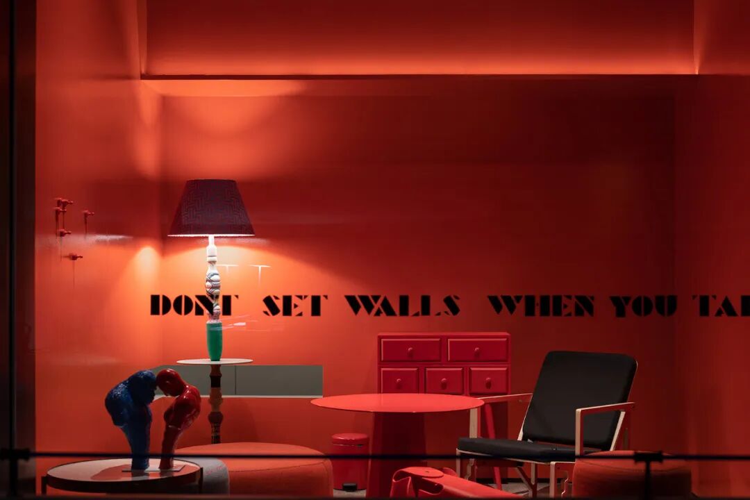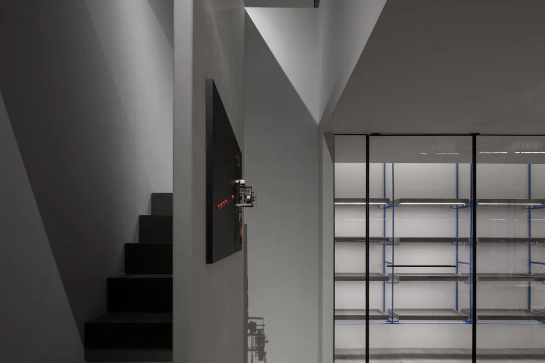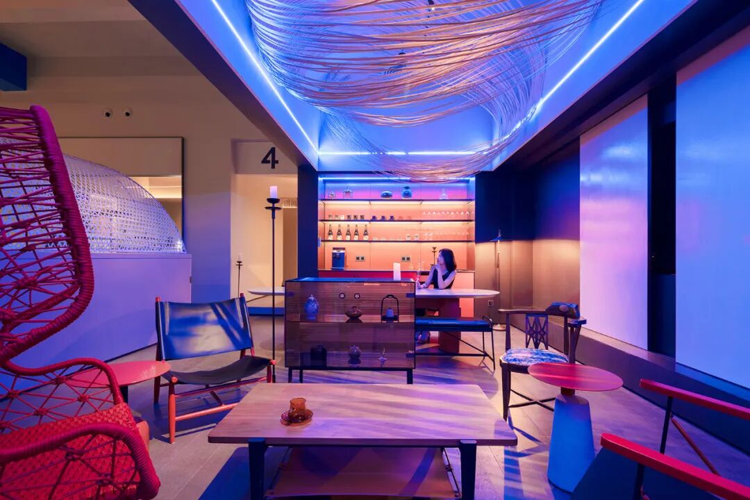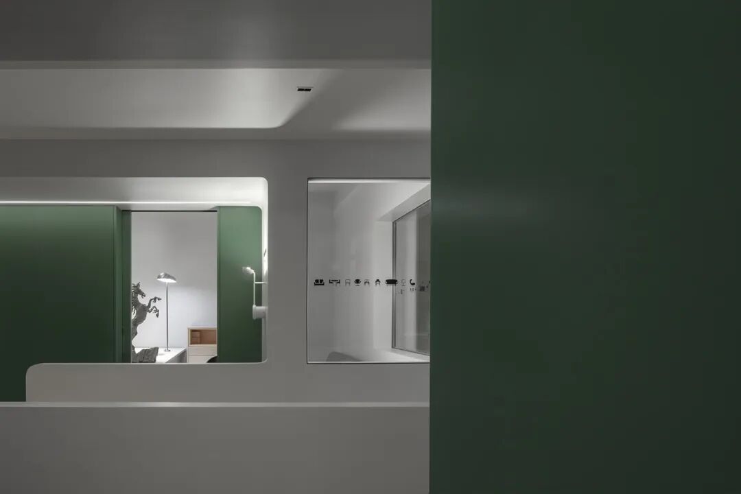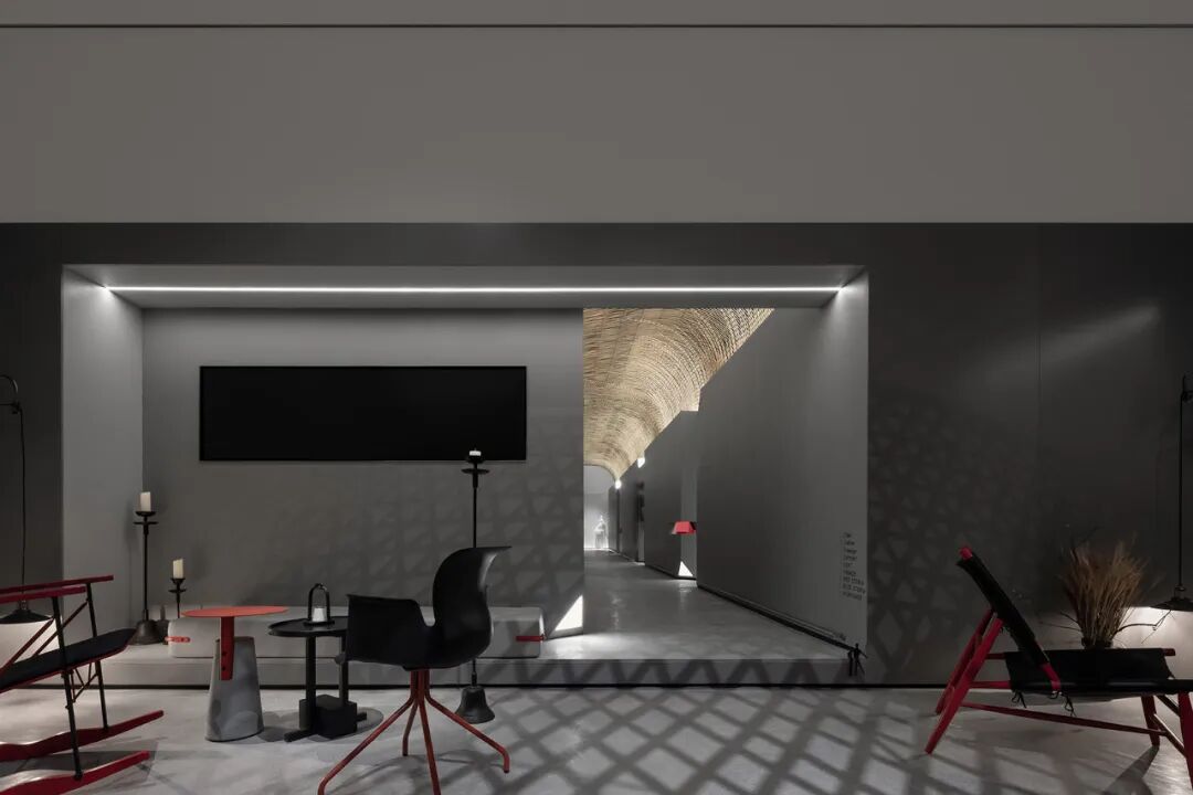 基于以上的“三性”,我们在空间的不同区域进行了不同体验感的设计。例如,“进窄门,走远路,见微光”的主题入口;长约21米的“T”台长廊;集酒吧、咖啡吧、茶吧、餐吧和自由交谈区的综合吧;以及一个“项目档案中心”的接待中心。