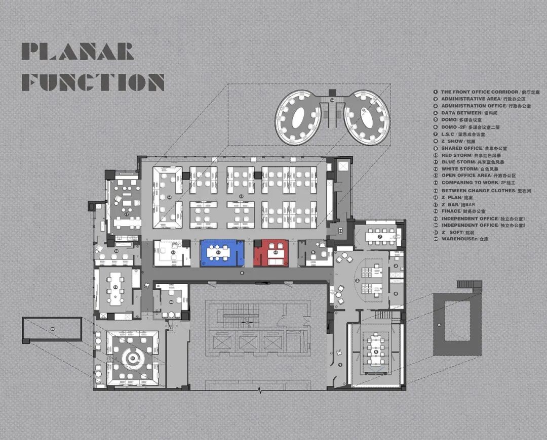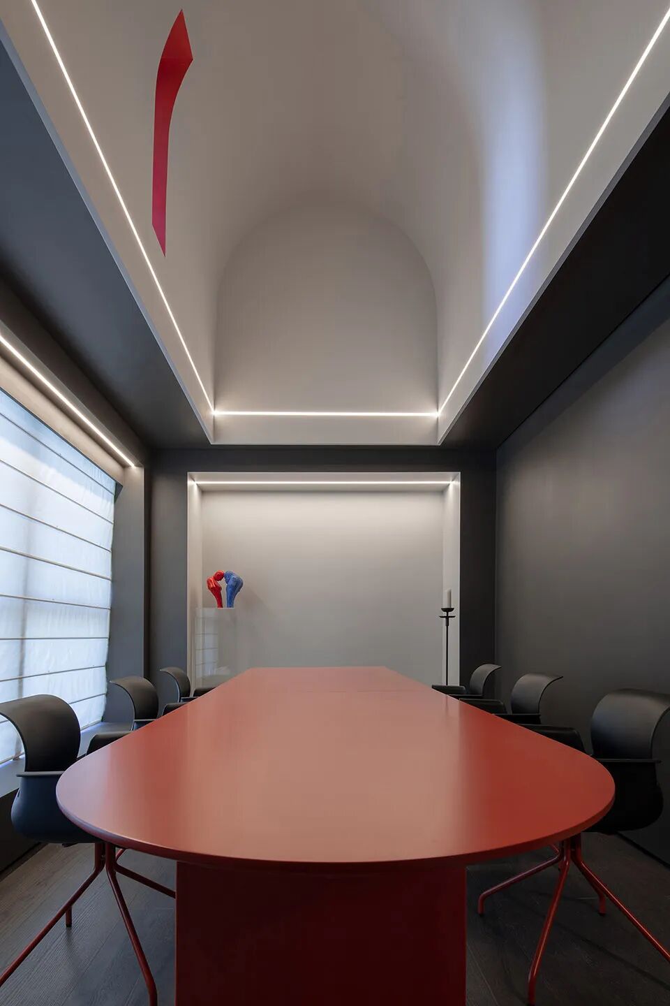 此外,我们还设计了一个“红色头脑风暴”会议室,一个“蓝色风暴”会议室,以及一个多功能空间的综合EPC样板中心库和一个更衣间,可同时容纳全公司员工的衣物。