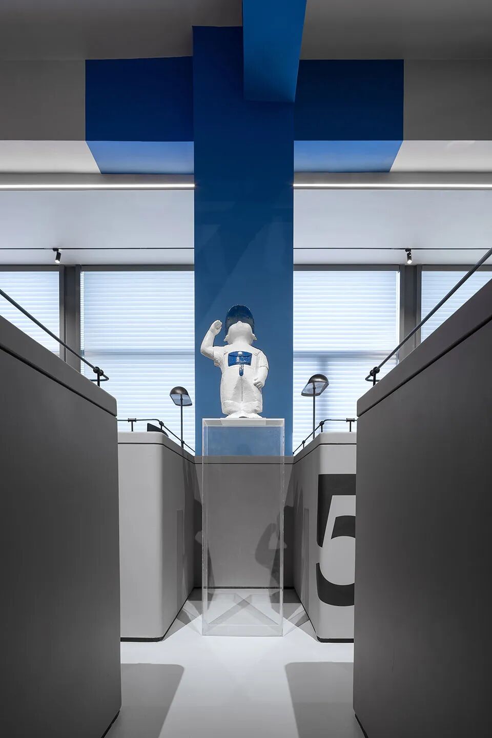 在陈设品设计上,我们制作了代表公司形象的雕塑,体现了积极向上和充满童心的特点;代表工程部形象的雕塑,则体现了外表强劲内心憨实的特点;此外,还有各种倡导时间科学利用的装置品,体现了设计理念和为人处世的价值观。