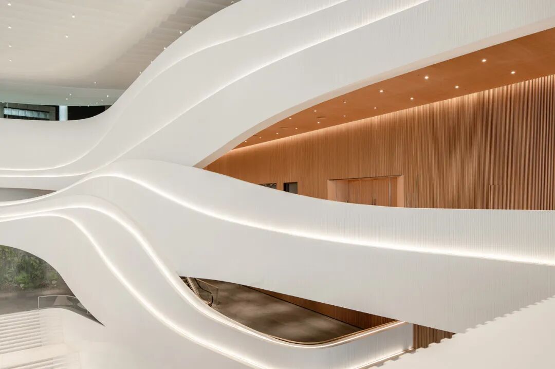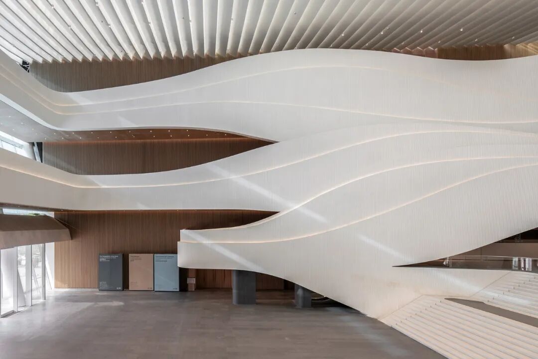 建筑师通过打破固有建筑平面的局限,重新塑造了观展流线,使公共空间环绕中庭布局,呈现出富有诗意和想象力的空间场景。这种设计不仅丰富了人们的观展体验,还为城市文化交流提供了一个开放、多功能的场所。