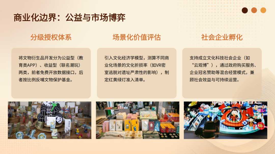 故宫曾因限制自媒体直播引发争议。未来需探索“公益内核+商业外衣”模式:洛阳博物馆设立“文化保护基金”,将夜游项目收益的30%用于文物修缮;苏州博物馆与奢侈品牌联名时,明确约定销售收入的5%反哺非遗传承人。这种“商业向善”的机制,使文化价值与商业价值实现动态平衡。