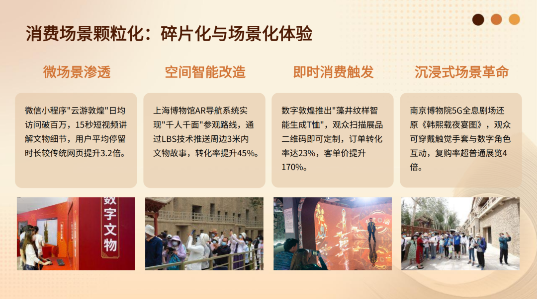 场景化消费: 成都金沙遗址博物馆的“金沙之夜”剧本游,玩家需在真实遗址中寻找线索。游戏带动周边餐饮消费增长130%,更催生出“文化剧本杀编剧”新职业,单部剧本授权费达20万元。
