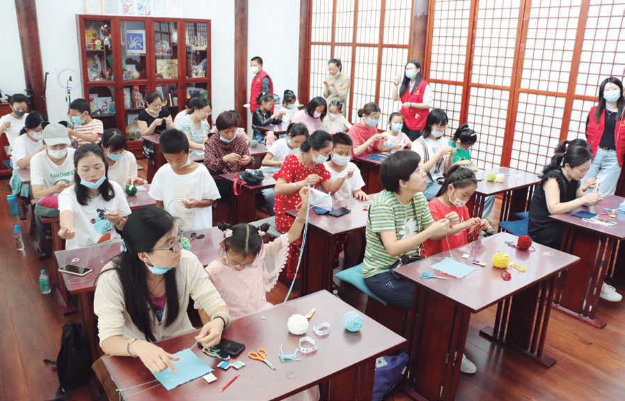 在社会教育方面,团队也根据展览设 计了配 套课程(图7),提前在吉林省博物院公众号发布 了课程报名信息。上课前,讲解员老师先带领家长 和孩子观赏传统刺绣和现代刺绣的制作技法视频, 然后带他们参观展览,通过观看文物来了解刺绣的 类型、针法以及满族人是如何使用这些物品的,最 后再回到奇趣大课堂上教授刺绣,并带领大家完成 刺绣作品。课程采取亲子同绣的方式,既让大家了 解了满族刺绣相关文化知识又锻炼了他们的动手能 力,受到了家长和孩子们的喜欢。