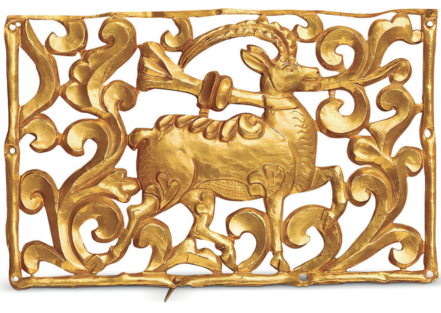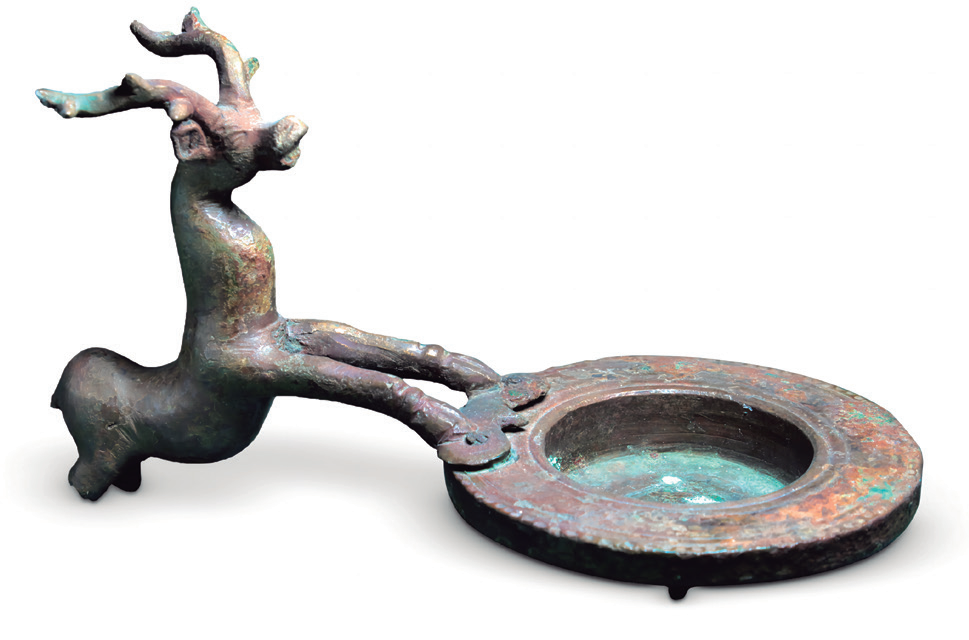 来自乌兹别克斯坦的青铜熏香炉(图7)与青海 省文物考古研究所藏鹿形金饰件(图8)均刻画了栩 栩如生鹿的形象,体现出人们对纯洁、光明、力量 和美好生活的共同向往。