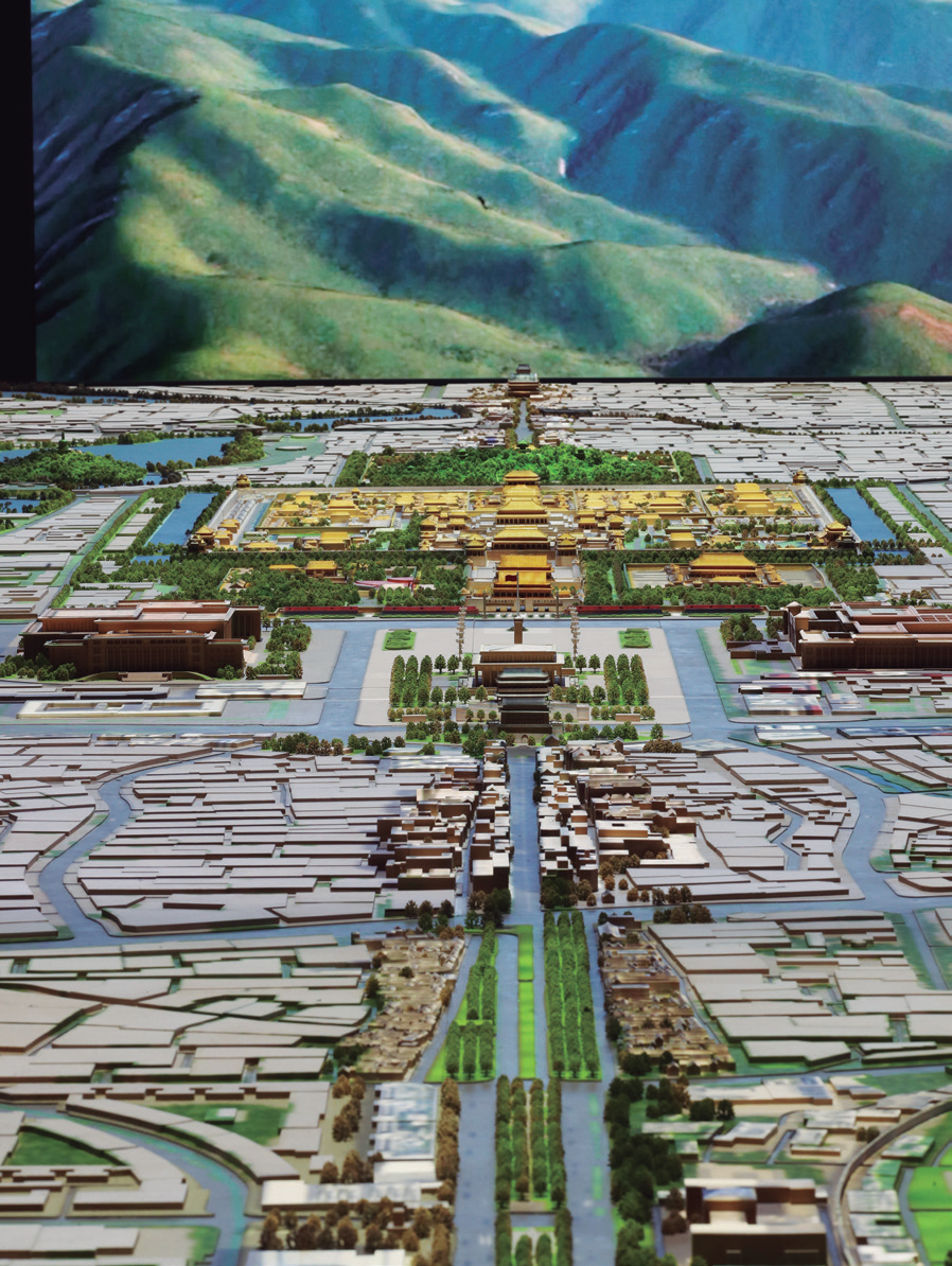 此次“辉煌中轴”展览由北京市文物局主办,首都博物馆承办,以“都城文化”为独特视角,旨在展现首都北京的非凡风范与深厚的文化风韵,是一次展示北京古都文化魅力的重要文化活动。通过百余件历史文物,16米沙盘模型,10余个综合展项,20余个视频详解,宣传展示北京中轴线的前世今生。在展陈设计中,首都博物馆始终立足于北京中轴线的理念,力求在空间布局、展览展示等方面与之相呼应,展现出和谐、壮美之感。可以说,北京中轴线为设计提供目标,而设计又为北京中轴线的研究提供一种展现形式,二者相互促进与发展。该展览为探索在有限的空间中,展现主题宏大而内涵多元的文化遗产作出了有益的尝试。