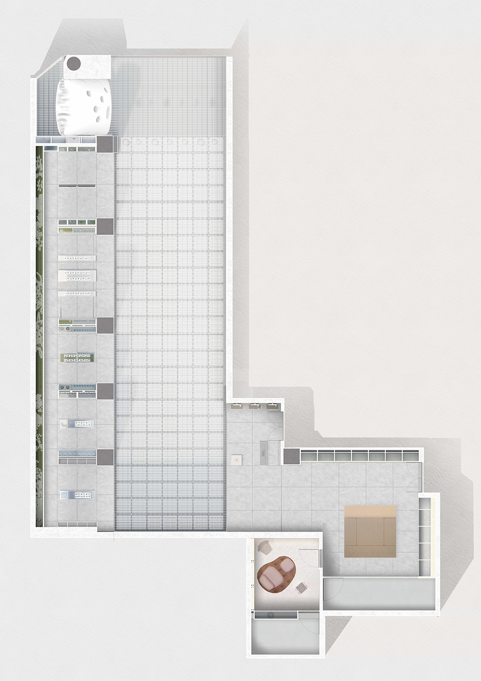 "超级种子"作为以尖端科技为依托的品牌,其雄厚的科研能力构成了产品核心竞争力之一。我们希望借助"实验室"的空间形象,以自然种子的萃取为基础进行空间设计,为消费者提供"科技"、"严谨"和"值得信赖"的空间想象。