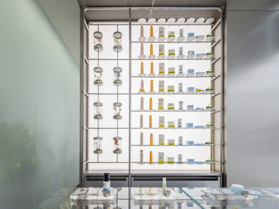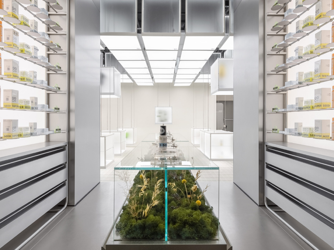 As a brand based on cutting-edge technology, "Super Seed"'s strong scientific research capabilities constitute one of the core competitiveness of its products. We hope to use the spatial image of the 'laboratory' to design spaces based on the extraction of natural seeds, providing consumers with a 'technological', 'rigorous', and' trustworthy 'spatial imagination.