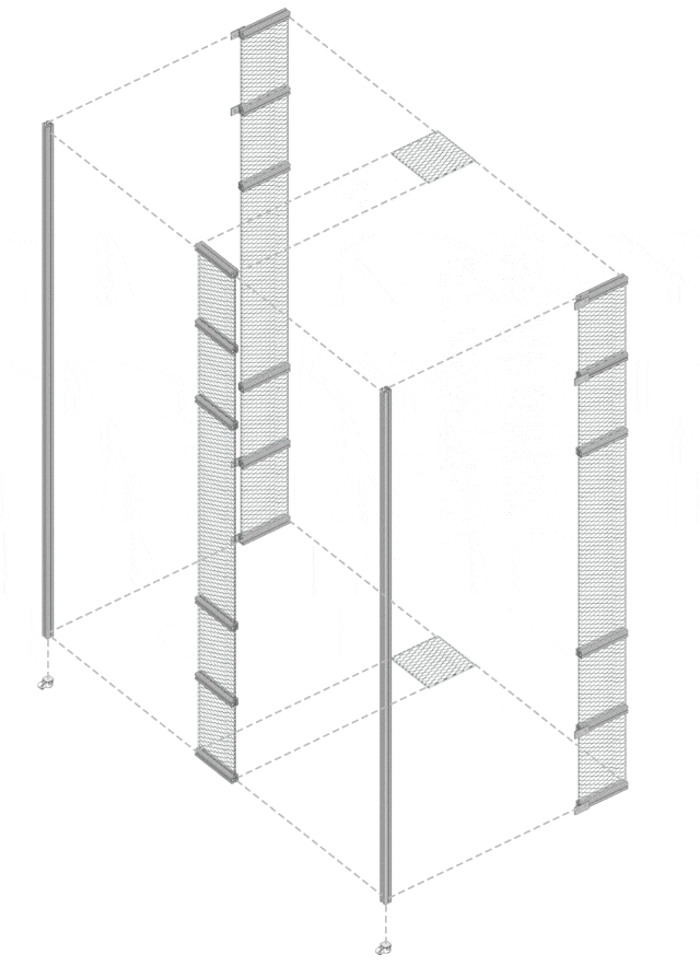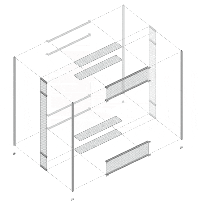 Considering that the length of conventional aluminum profiles is 3 meters, in order to reduce material loss and take into account the height of the site, we have designed the dimensions of the entire frame to be depth 350mm * height 2650mm. At this size, we designed four types of frame modules, namely two forms of basic frame, hanging frame, and storage frame. This design can effectively utilize aluminum profiles, reduce material waste, meet the needs of exhibitions, and is easy to install and move.