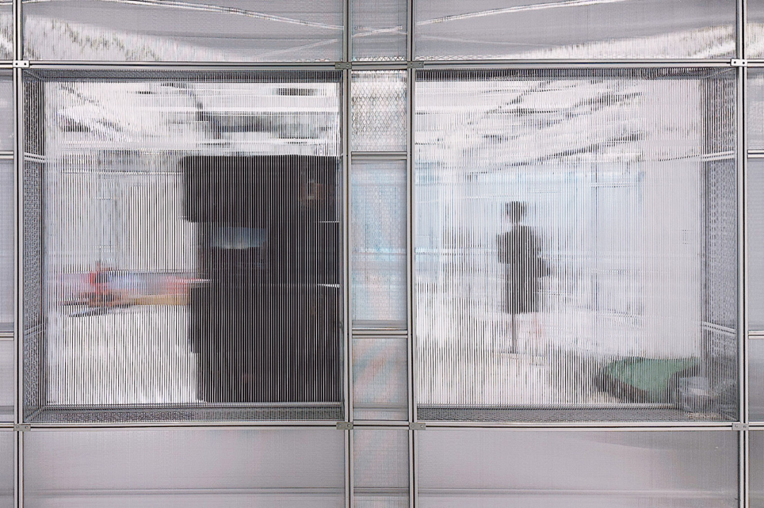 In order to prevent the windowless space from appearing oppressive, we used double-layer sun panels on the outer layer of the outer frame. The purpose of doing so is to make the boundaries of the space appear and disappear while maintaining a certain level of privacy. This design creates an ambiguous and romantic feeling of 'you stand on the bridge to see the scenery, and the person watching the scenery stands upstairs to see you', filling the entire space with mystery and imagination.