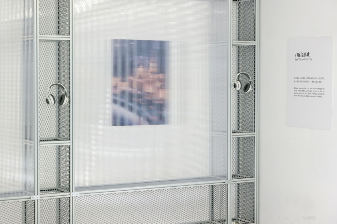 在“听音识城”展区,我们在框架外层蒙上了单层阳光板,这样的设计旨在让观众通过耳机里的城市声音,尝试识别出影像所处的城市区域。在影像的展览中,我们又叠加了一层声音的传播,使观众在观赏城市景观的同时,也能够感受到城市的声音氛围。这样的设计创意将城市的更新不仅仅局限于视觉上的体验,还将声音作为一种重要的元素加入其中,使观展者能够更加全面地感知城市的变化和发展。