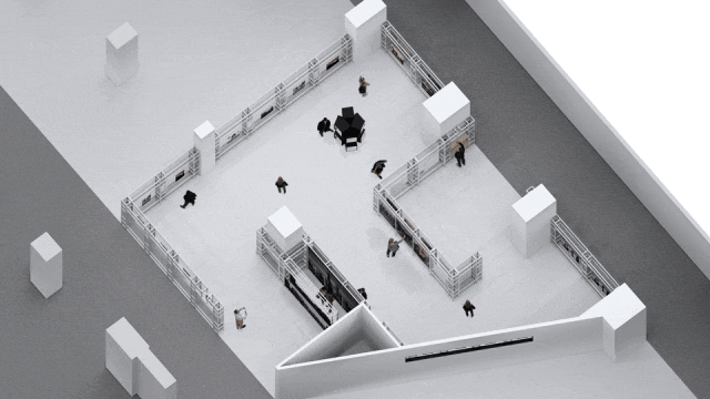 The exhibition wall is divided into two types, with the outer ring limiting the space and the inner ring dividing and enclosing 8 exhibition areas. After the exhibition, we can create a front desk and rest area by moving three sets of partitions within the inner circle. In addition, after reassembling the two sets of short partitions in the inner circle, an office can be naturally formed. This design makes the transition from exhibition to office easy and efficient, providing convenience for the multifunctional utilization of space.