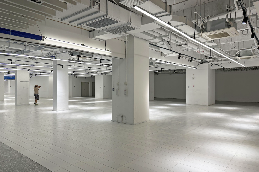 考虑到时间和预算的限制,以及现场机电设备纵横交错的情况,我们决定将天花上的机电设备视为装置的一部分,而不是试图将其与设计融合。这样做不仅能够节省时间和成本,还能够创造出独特的展览氛围,使展览更具有艺术性和观赏性。