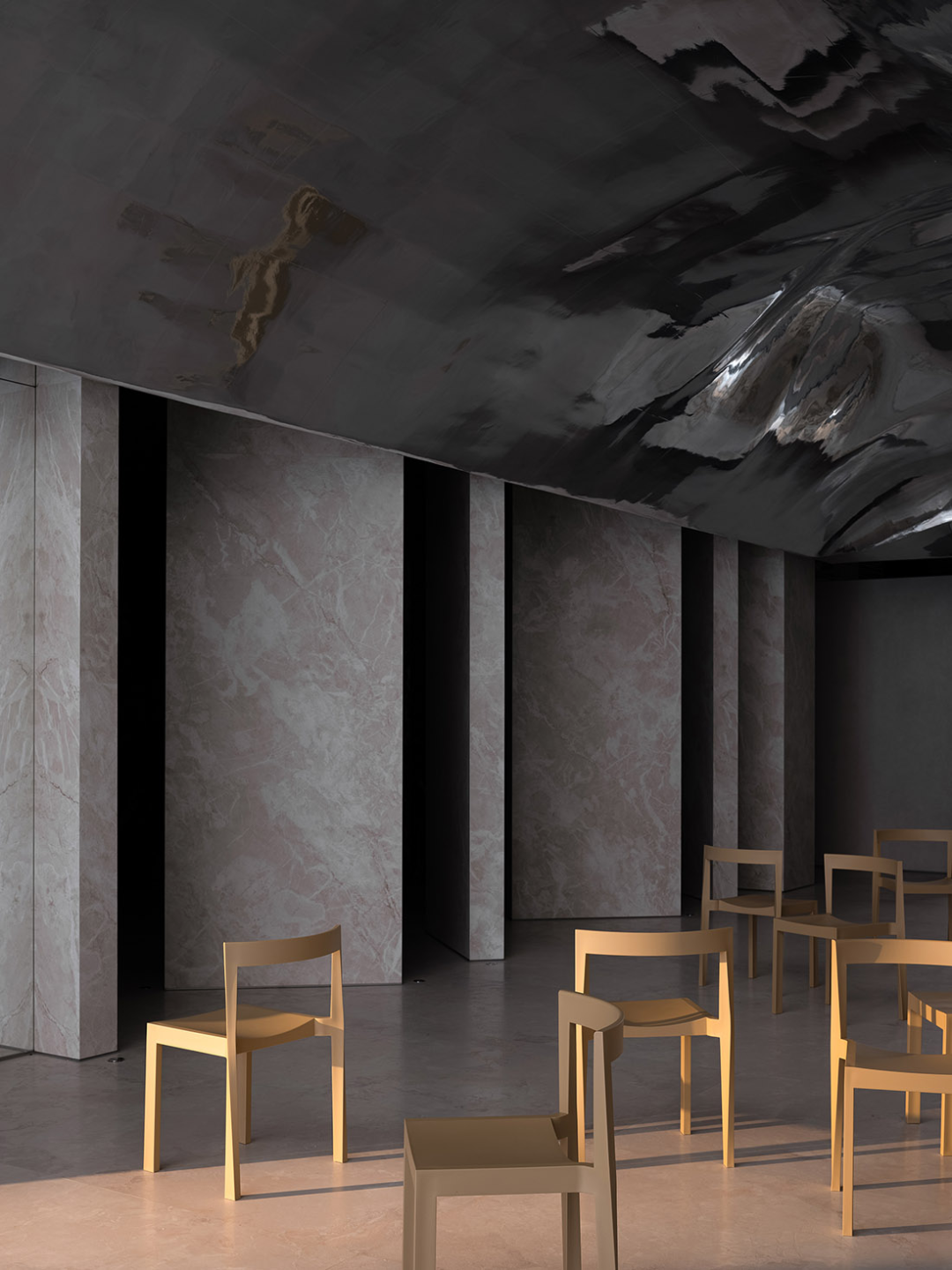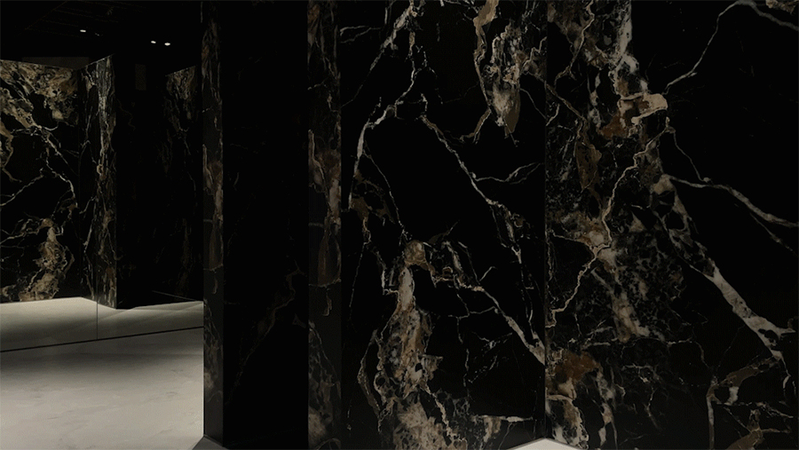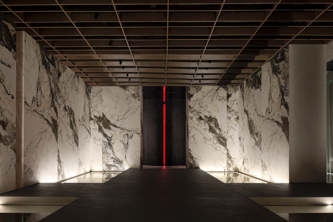 而正是多种大理石自然的花纹为设计的和谐增加了难度,也让团队意识到了严谨的产品归纳的重要性,因此在设计过程中对产品的色彩与花纹的表现进行归类,用半围合的方式来为每个产品形成一种独立的姿态,更好地表现出产品的个性与品质。