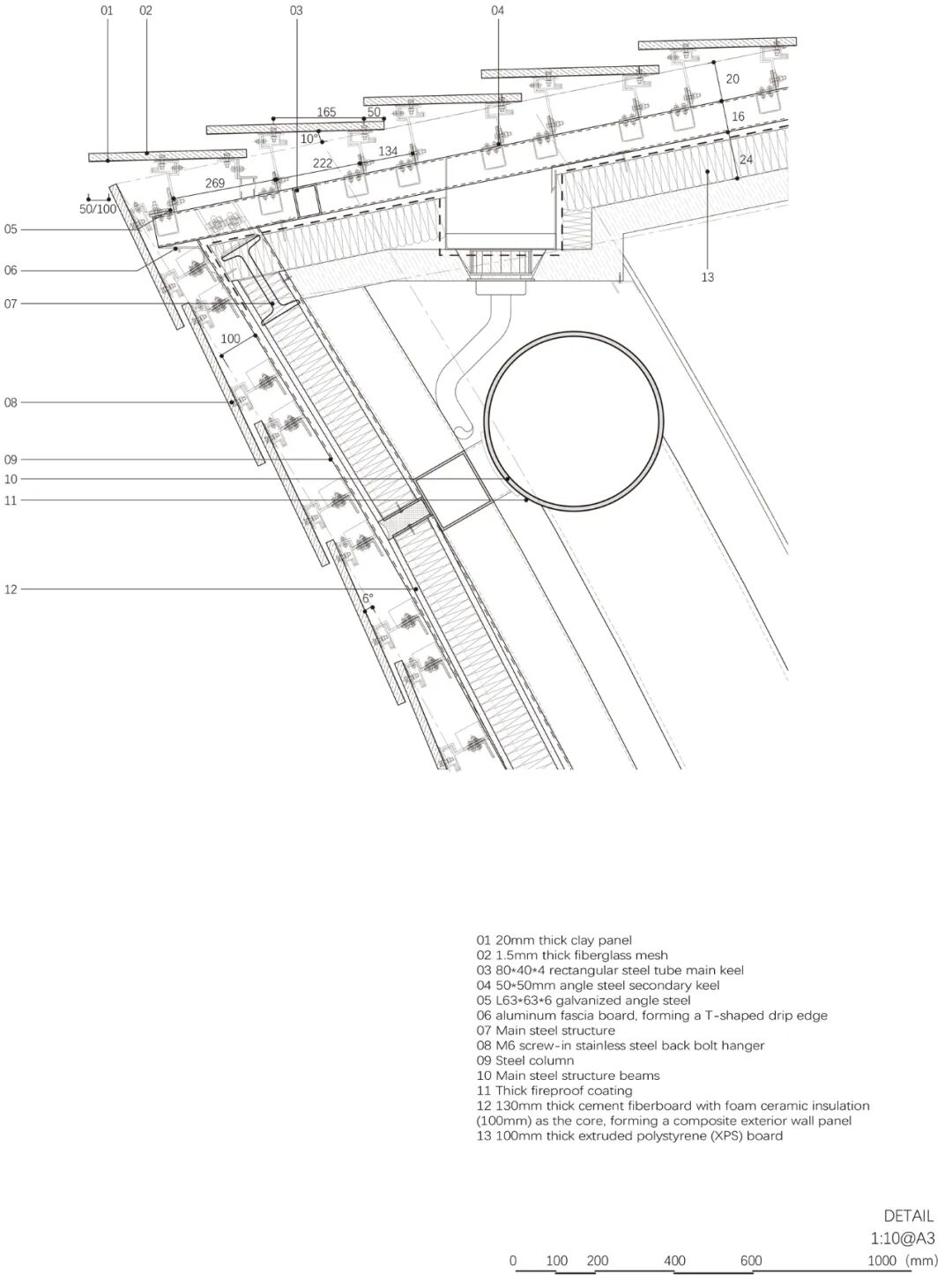 外立面反应了陶器在制造中的“温度”对色彩的影响,与当地工匠合作打造而成。其不规则的表面上釉色彩层次丰富,随时间和季节的变化展现出不同视觉效果。温暖且略微粗糙的触感如同中国茶具一般,这些陶瓷面板承载着这座陶瓷之城千年的历史与文化。