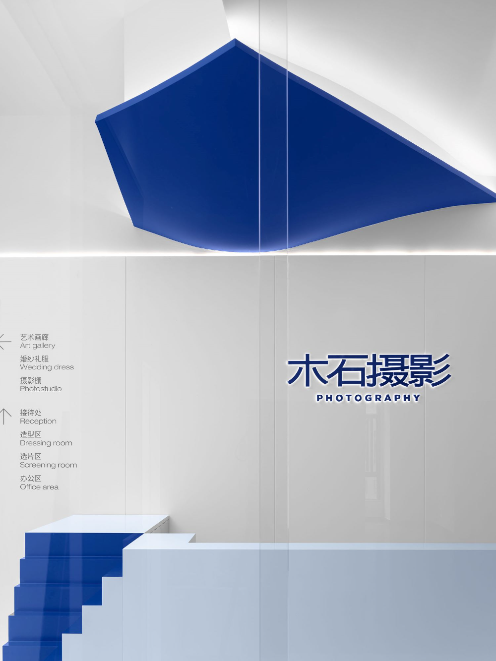 When designing MUSHI Wedding Photography Art Space, Cun FF expected that this space should include the sweetness and romance of couples.Therefore, the innocent and dreamy blue was adopted as the main tone of the space. As the VI color of MUSHI Photography, blue is applied in different materials.