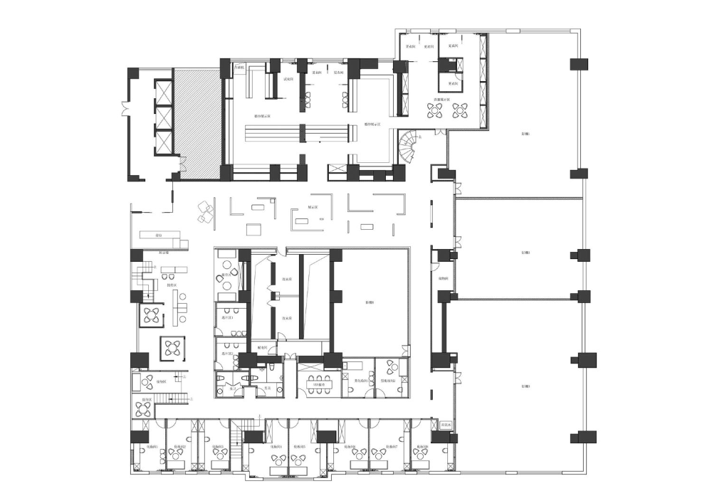 与普通的摄影空间不同,村FF在3000平方米的项目中整合了艺术画廊、婚纱、男装造型、商业工作室、更衣室、手工珠宝工作室、四维接待区、办公区等八个不同的功能,在艺术感和功能的探索中达到了完美的平衡。