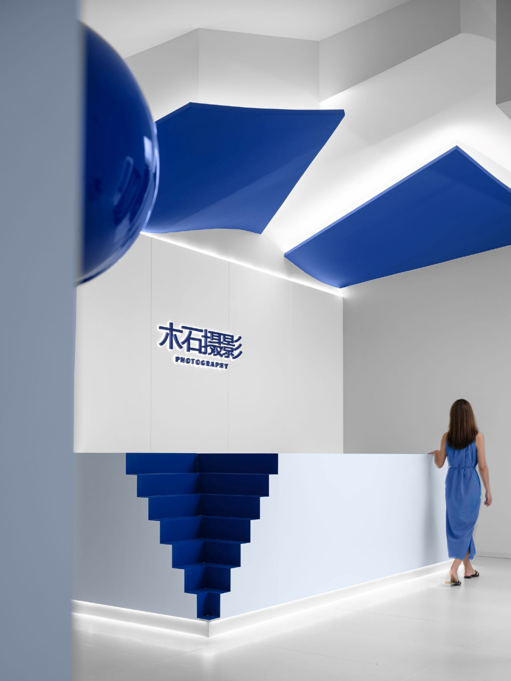 在设计MUSHI婚纱摄影艺术空间时,Cun FF希望这个空间应该包括情侣的甜蜜和浪漫。因此,天真梦幻的蓝色被选为空间的主色调。作为MUSHI摄影的VI色,蓝色被应用于不同的材料中。